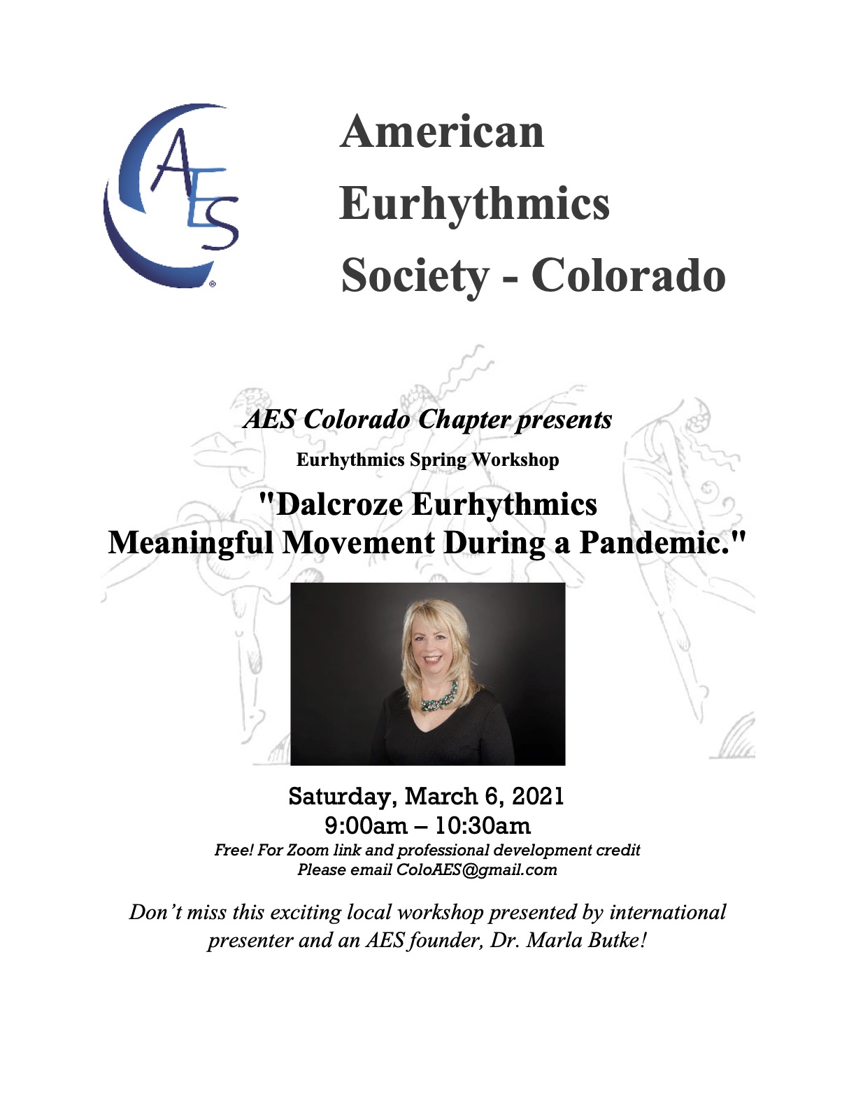 Marla Butke, Ph.D., recently retired from Otterbein University where she directed the Women’s Chorale and taught General Music and Choral Methods, holds degrees from Miami University, Wright State University and The Ohio State University. She is a Master Teaching Artist with the American Eurhythmics Society and serves as the President of the Board of AES. Dr. Butke regularly presents Dalcroze Eurhythmics workshops throughout the United States and internationally, including presentations in Spain, China, and England, and for the American Choral Directors Association National and Central/North Central Regional Conferences, as well as other national and state music education conferences. Dr. Butke and co-author, Dr. David Frego, have written two books, Meaningful Movement: A Music Teacher’s Guide to Dalcroze Eurhythmics, published by Music is Elementary and Dalcroze Eurhythmics in the Choral Classroom published by the Hal Leonard Corporation.