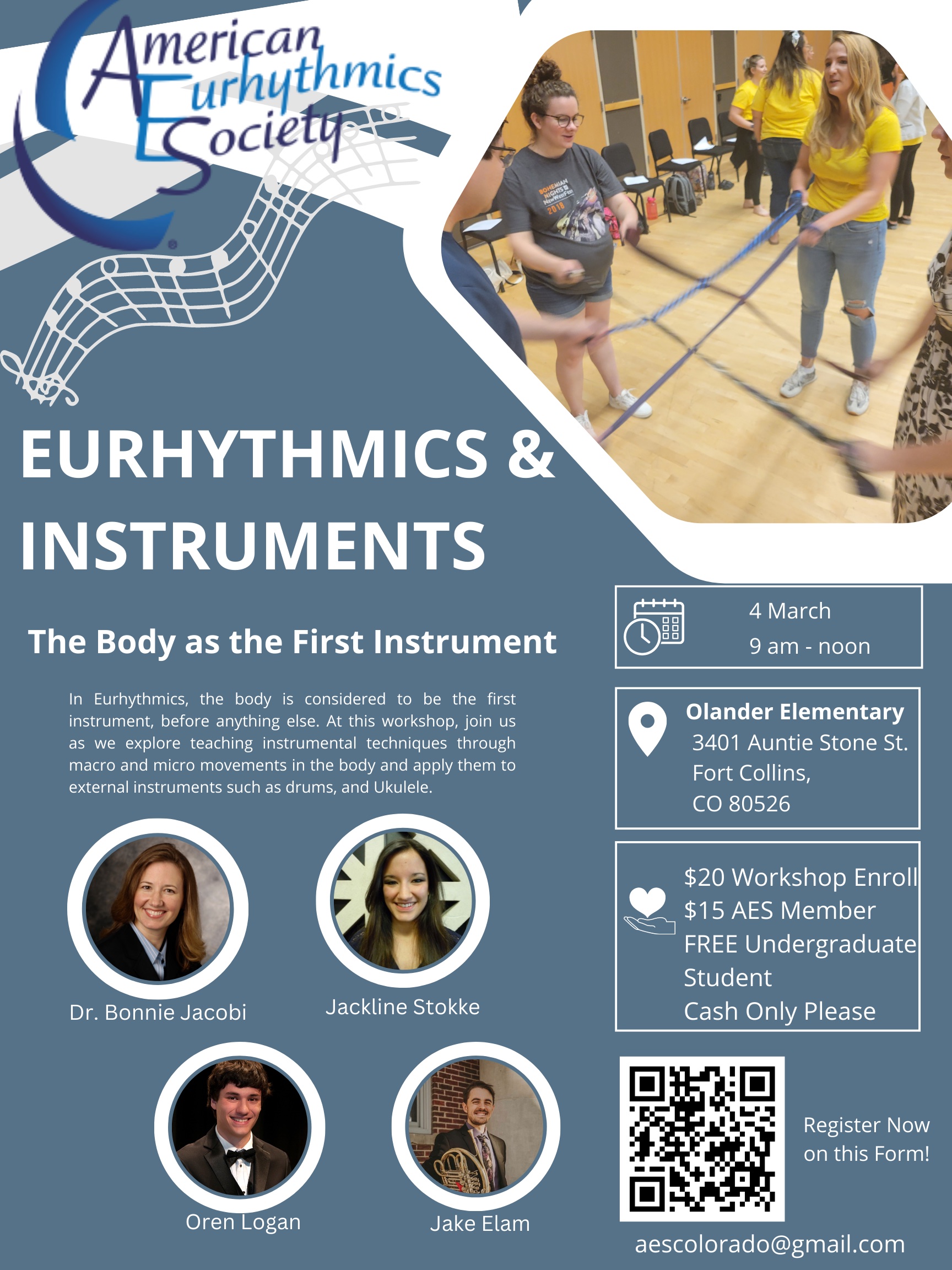 In Eurhythmics, the body is considered to be the first instrument, before anything else. At this workshop, join us as we explore teaching instrumental techniques through macro and micro movements in the body and apply them to external instruments such as drums, and Ukulele.