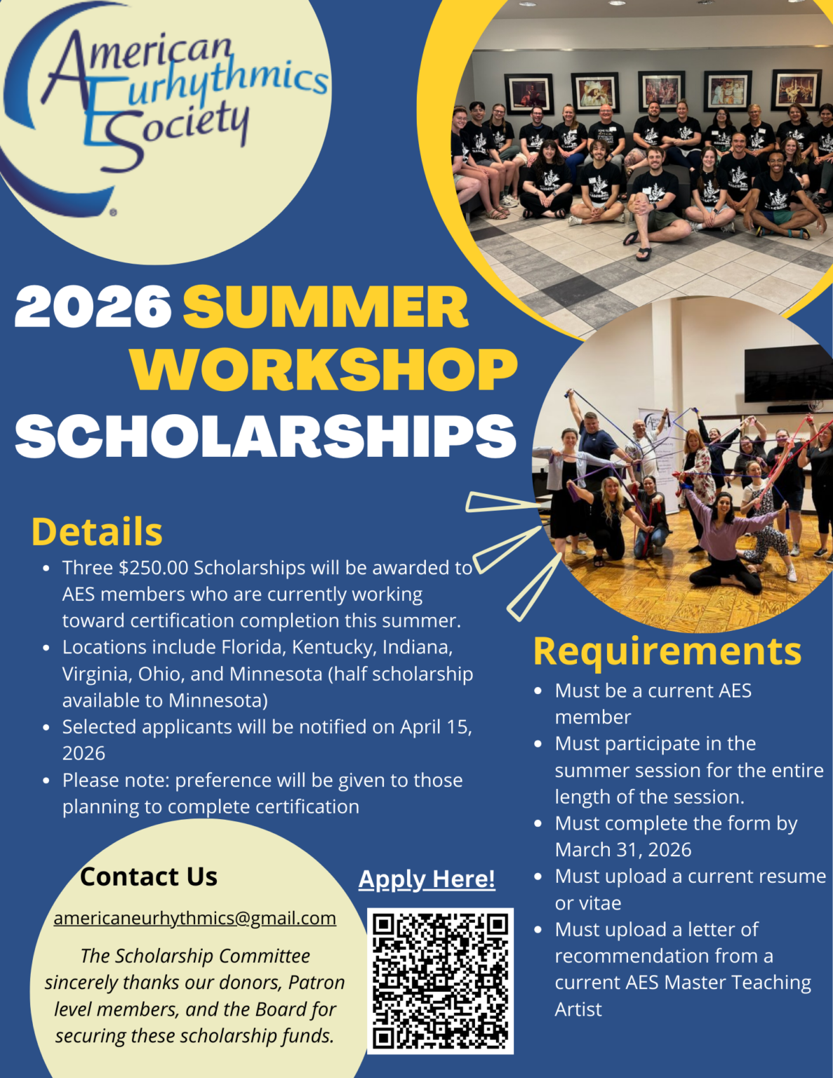 The Scholarship Committee sincerely thanks our donors, Patron level members, and the Board for securing the funds for these scholarships. If you have any questions, please reach out to us at americaneurhythmics@gmail.com